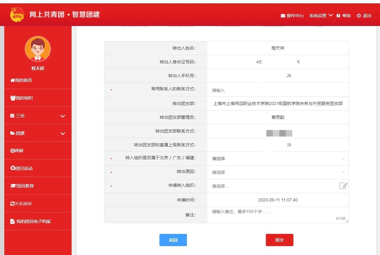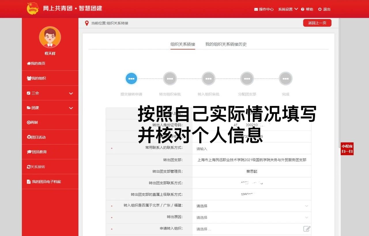 三、填写团组织关系转接申请